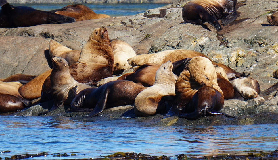 L'île de Vancouver est un paradis pour voir les cétacés, l'excursion en bateau à Telegraph Cove fut prolifique, plus d'une quinzaine de baleines à bosses faisant le show et des lions de mers de Steller se dorant la pillule ou pêchant... quelques phoques communs, mais aucun orque à l'horizon...